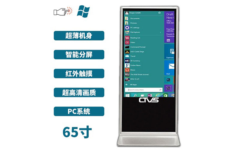 深圳中視智能商顯科技有限公司專注于中高端立式觸摸一體機的研制與生產銷售,旗下產品還包含了液晶廣告機、教學一體機、會議大平板以及lcd條形屏等產品,此款產品顯示尺寸為65寸,搭載pc操作系統,支持windows7、windows10等操控,操作簡便、運行穩定,同時廠家還支持提供定制化生產服務。
